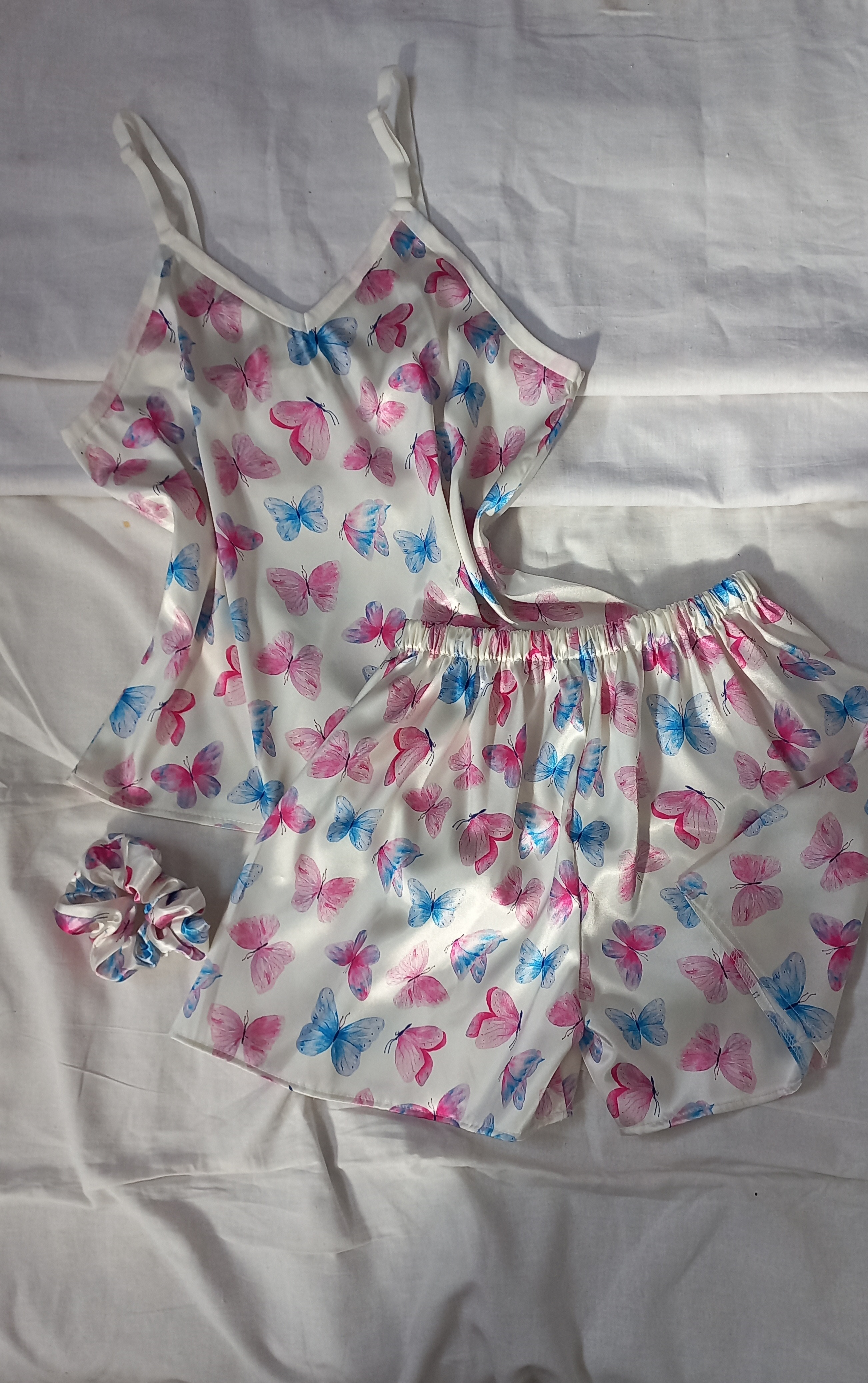 ست تاپ شورتک ساتن زنانه طرح پروانه
