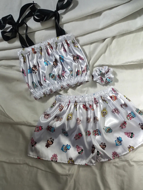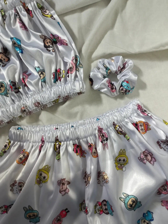 ست کراپ شورتک +اسکرانچی ساتن الیکس اعلا
