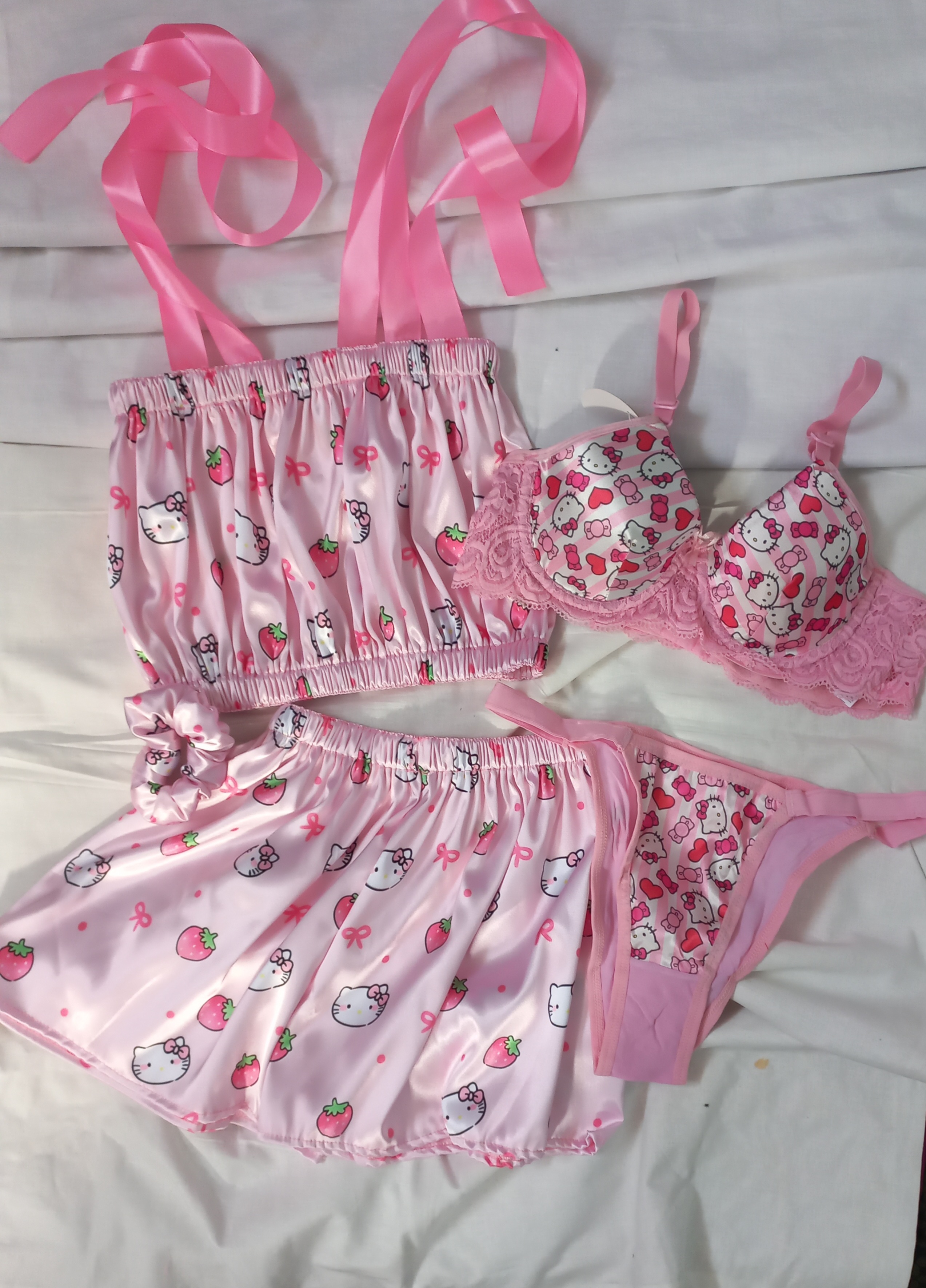 ست پنج تیکه شامل نیمتنه شورتک و یک اسکرانچی شورت و سوتین لطفا هنگام خرید سایز سوتین رو در قسمت توضیحات وارد کنید ⭐
